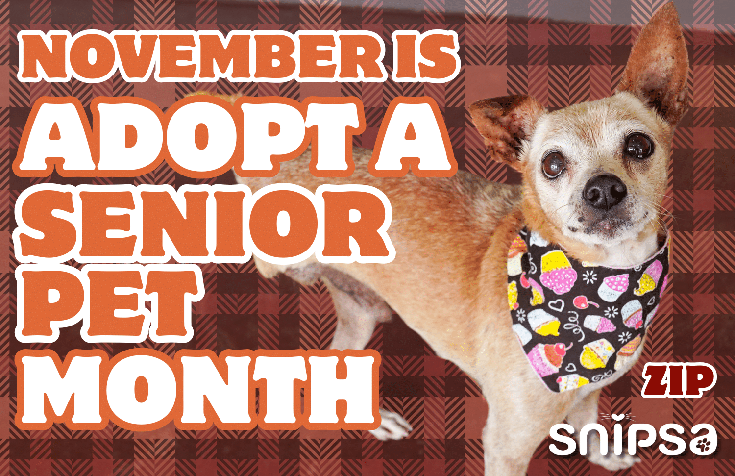 Zip is the SNIPSA staff’s favorite senior. Despite only having three legs, nothing slows this little guy down. Zip is full of love, loyalty, and personality—a perfect reminder that senior dogs make some of the best companions.