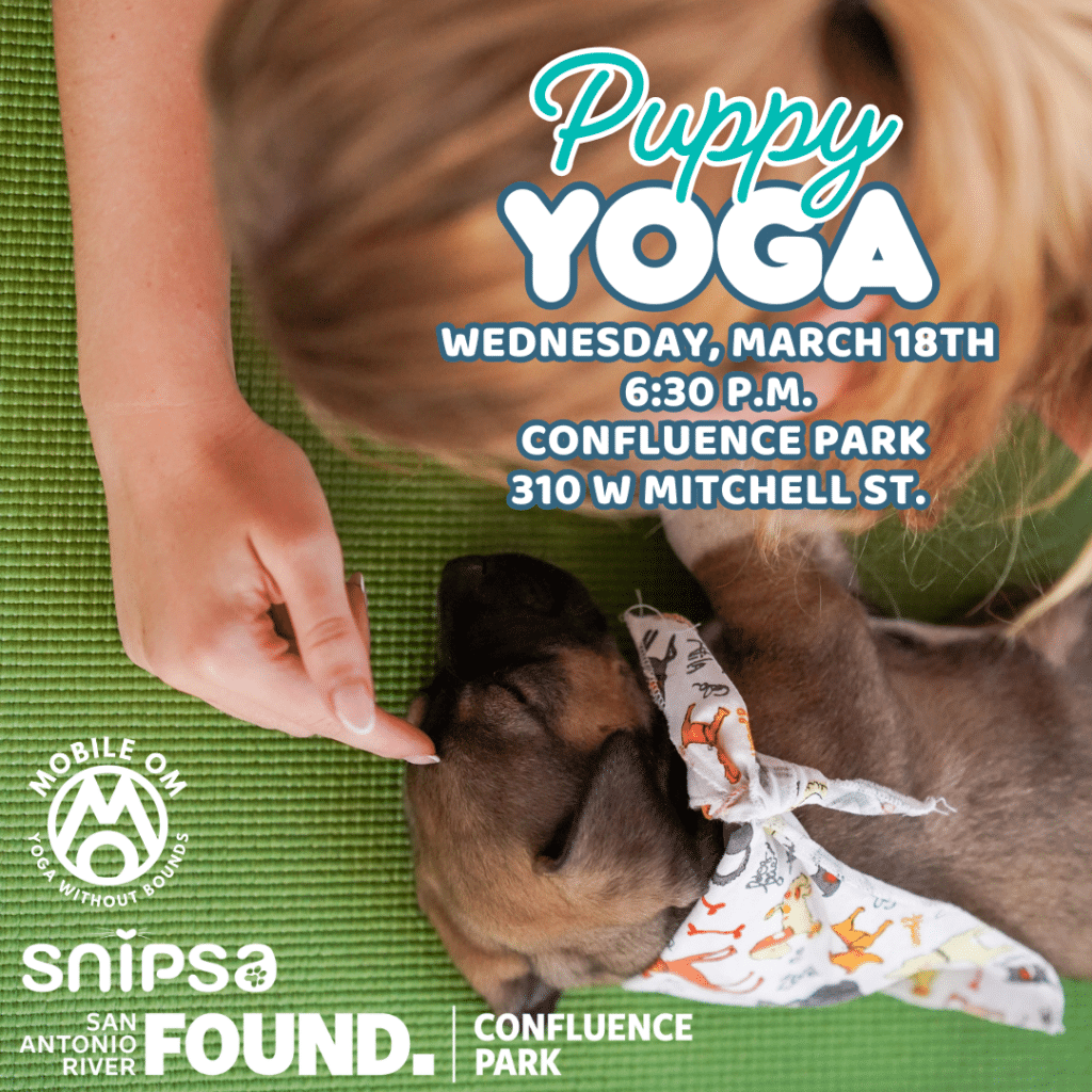 Take PAWS for a good cause and join us at Confluence Park for a playful yoga practice with adorable and adoptable SNIPSA puppies. Puppy Yoga meets monthly on Third Wednesdays at 6:30 P.M. Register with a $20 donation to support SNIPSA's rescue mission!