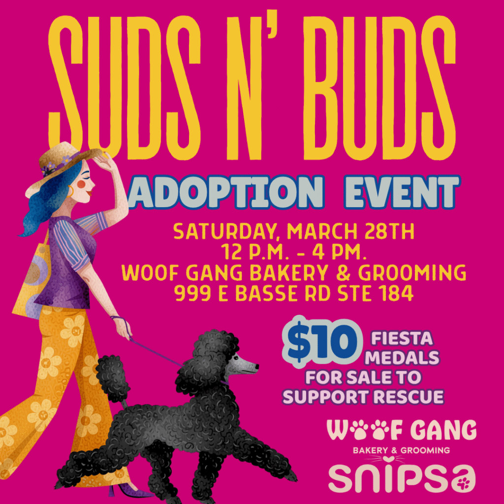 SNIPSA returns to the Shops at La Cantera on April 4th with our menagerie of adoptable rescues and limited-edition Fiesta Medals for sale. So, if you're looking for a San Antonio event with a little extra love, come out and join us under the Heritage Tree!