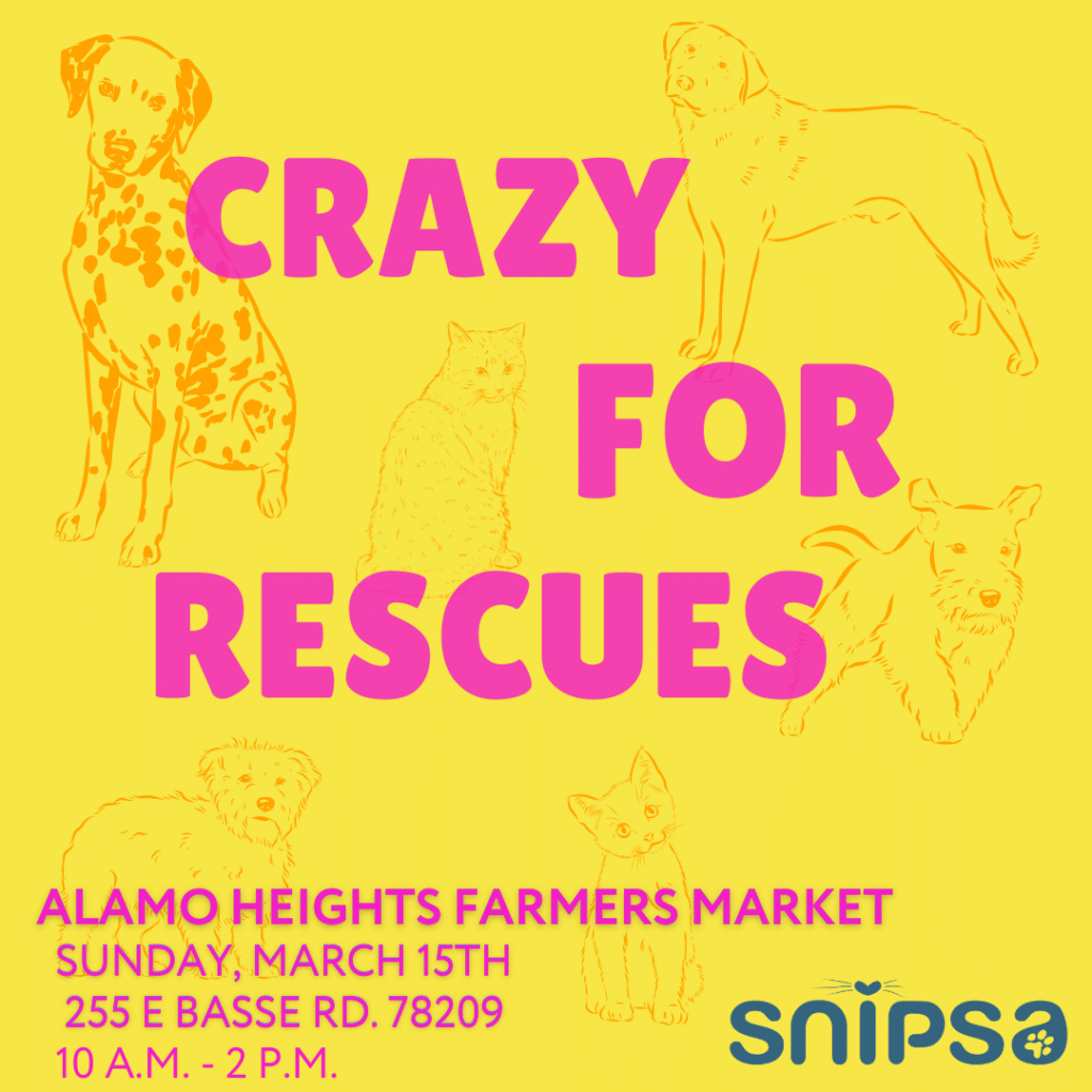Are you interested in adopting a SNIPSA rescue or shopping our merchandise? Well, that just makes our tails wag! Check out our upcoming events to see where to find us and our adoptable pets around town.