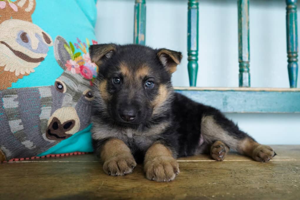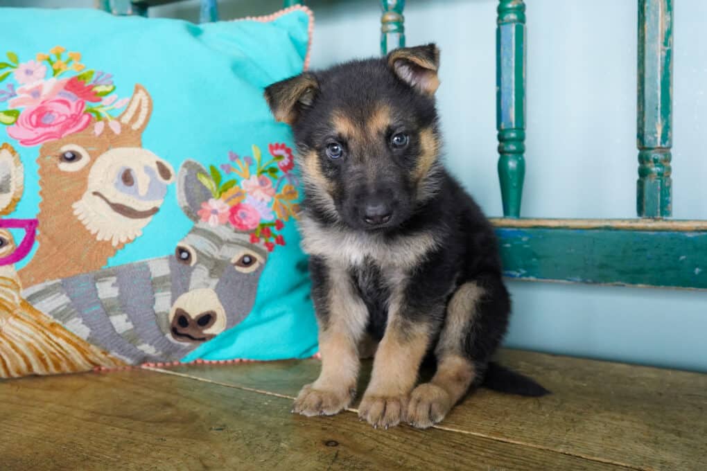 We have Bumble, Button, Berry, Blossom, Biscuit all lined up and ready to impress. Don’t be fooled by their sweet names and tiny bodies. This adorable litter will grow up to be total powerhouses! The Shepherd is a breed known for its active nature, intelligence, and loyalty. Shepherds excel at most anything they’re trained to do: guide and assistance work for the handicapped, police and military service, herding, search and rescue, drug detection, competitive obedience, and—last but not least—faithful companionship. They thrive in a home that can provide them with a job to do or can simply let them in on all family activities.