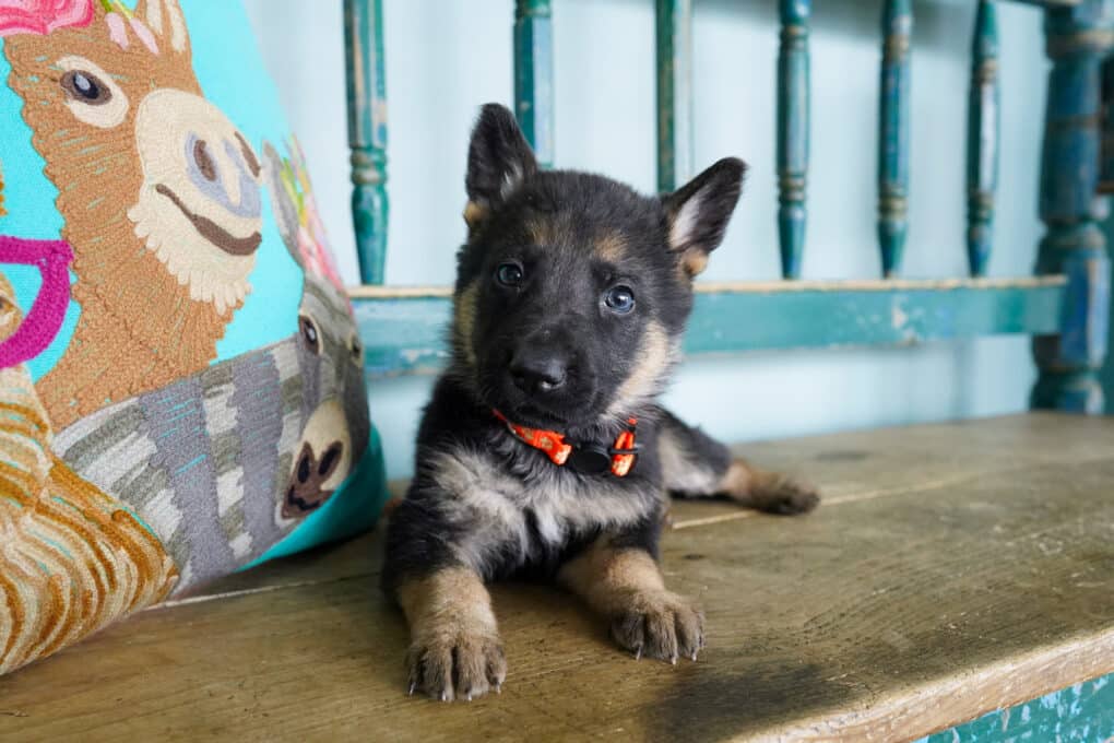 We have Bumble, Button, Berry, Blossom, Biscuit all lined up and ready to impress. Don’t be fooled by their sweet names and tiny bodies. This adorable litter will grow up to be total powerhouses! The Shepherd is a breed known for its active nature, intelligence, and loyalty. Shepherds excel at most anything they’re trained to do: guide and assistance work for the handicapped, police and military service, herding, search and rescue, drug detection, competitive obedience, and—last but not least—faithful companionship. They thrive in a home that can provide them with a job to do or can simply let them in on all family activities.