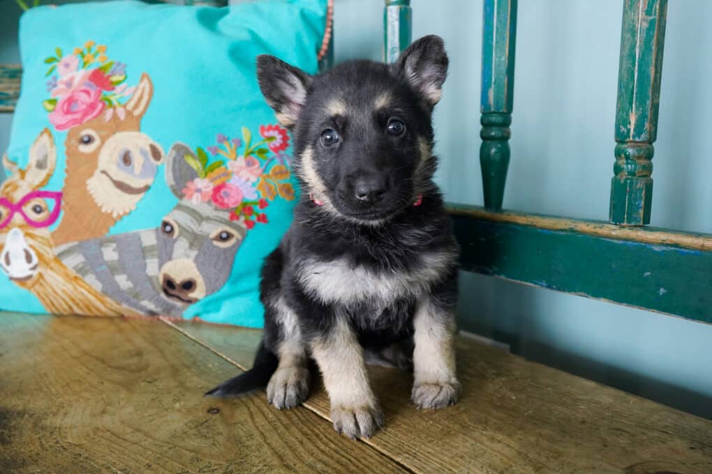 We have Bumble, Button, Berry, Blossom, Biscuit  all lined up and ready to impress. Don’t be fooled by their sweet names and tiny bodies. This adorable litter will grow up to be total powerhouses! The Shepherd is a breed known for its active nature, intelligence, and loyalty. Shepherds excel at most anything they’re trained to do: guide and assistance work for the handicapped, police and military service, herding, search and rescue, drug detection, competitive obedience, and—last but not least—faithful companionship. They thrive in a home that can provide them with a job to do or can simply let them in on all family activities.