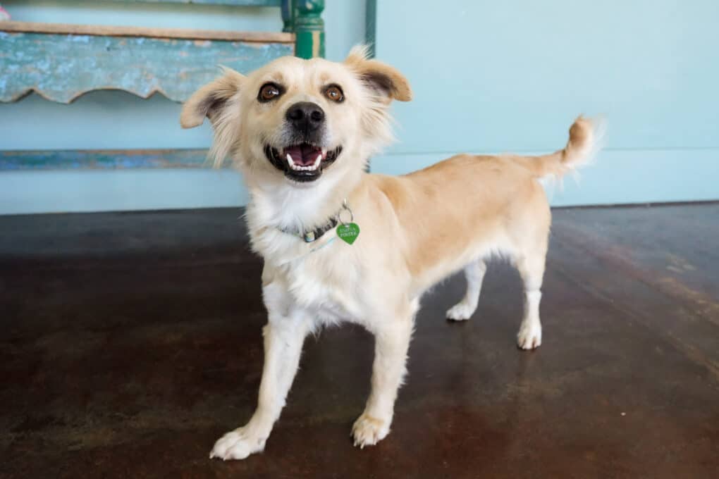 A delicate Papillon mix who arrived from a small rescue, Foxie is as enchanting as her namesake. With her soft features and soulful eyes, we have no doubt that she will enchant you!