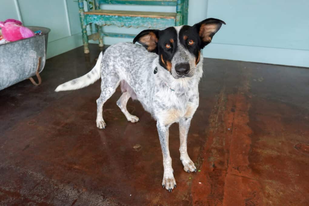 Joyce is the ultimate den mother, just like the brave woman who fights Demogorgons for her kids! This loving Blue Heeler mix is loyal, affectionate, and resilient, having been through the unknown and come out shining.
