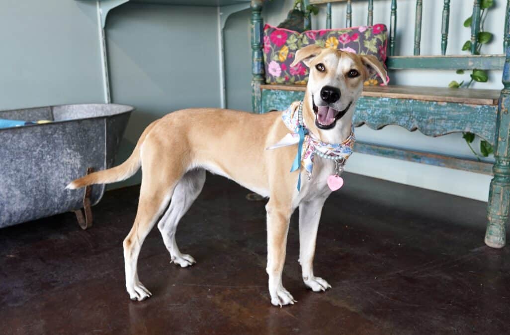 Mimi (the dog!) has love and stability to offer, just like her foster mom. When you look into this pup’s amber eyes, you will see a reflection of pure gratitude. Mimi is an incredibly loving girl with a cheerful approach to life. She is always game for a belly rub or a romp with the other resident dogs. As an adult dog with experience in a home, she is potty trained, great on her leash, and well-behaved indoors. If you are a first-time dog owner or just desire a pet with a little life experience, take a chance on Mimi. She will never, ever leave your side.