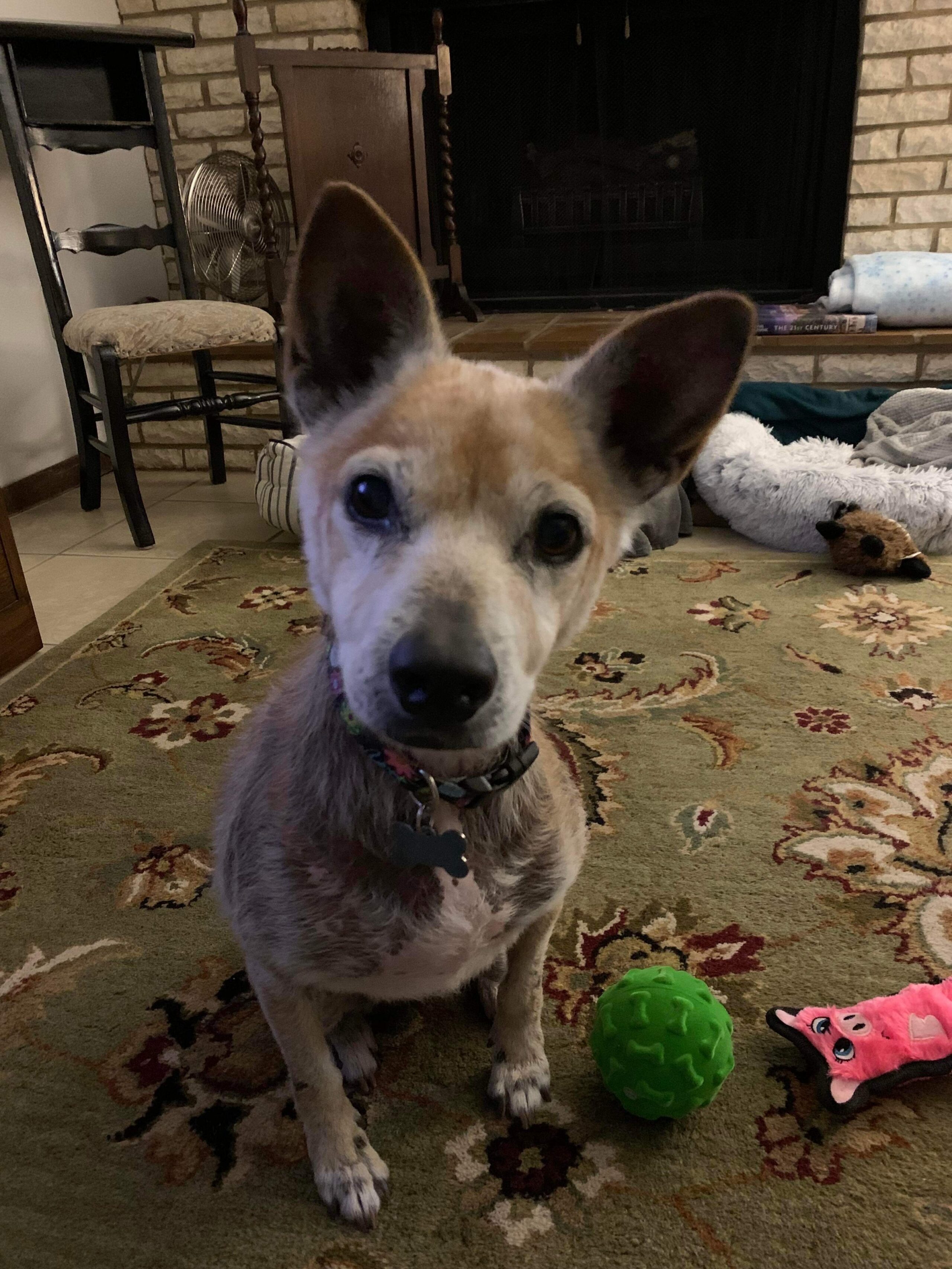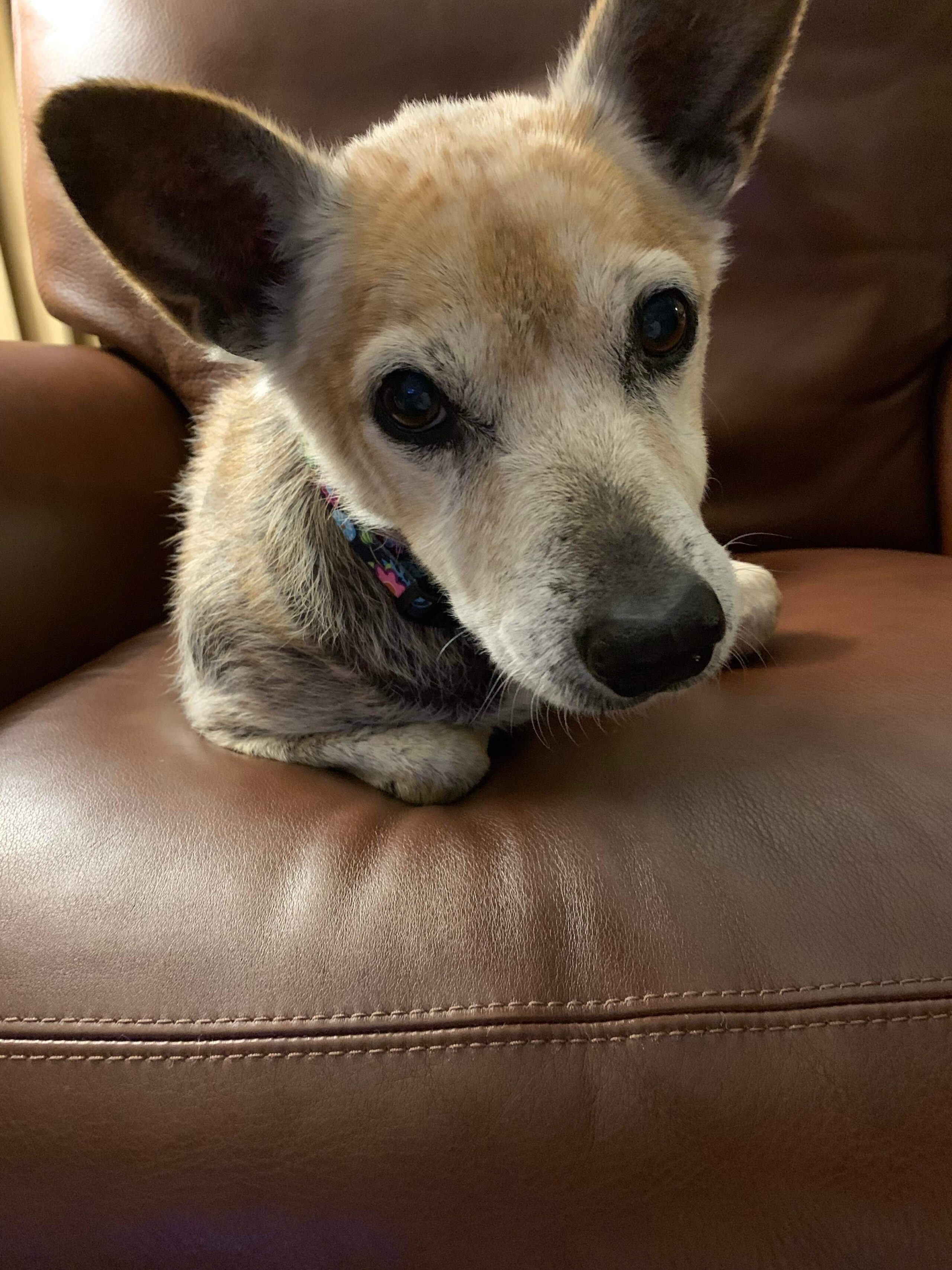 Remodel’s name was changed to Rema, which she caught onto very quickly. Now, Rema spends her days walking, snacking on treats or lounging on one of her three new dog beds, the sofa, the chair, or any lap she can find! We wish Rema a long and happy life in her forever home!
