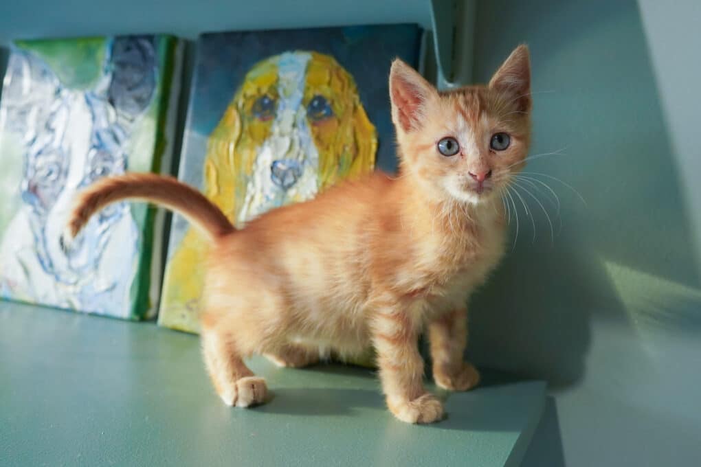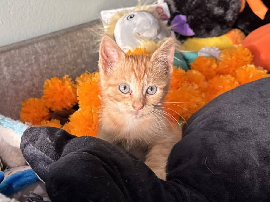This kitty is soda-rn cute; no wonder she got rescued! Sunkist was scooped up by a good samaritan after she was discovered crying in the backyard. All alone, with no family or resources, it’s no wonder she was upset. Now, Sunkist is thriving in foster care and letting her sweet, curious personality bubble to the surface. She is learning about the joys of a soft blanket and a feather toy. She is eating her meals with gusto. And most importantly, she is becoming the best little snuggle buddy! Orange cats are famed for their fearlessness and goofy antics. So, if you’re looking for a companion with a little extra fizz, apply to meet Sunkist!